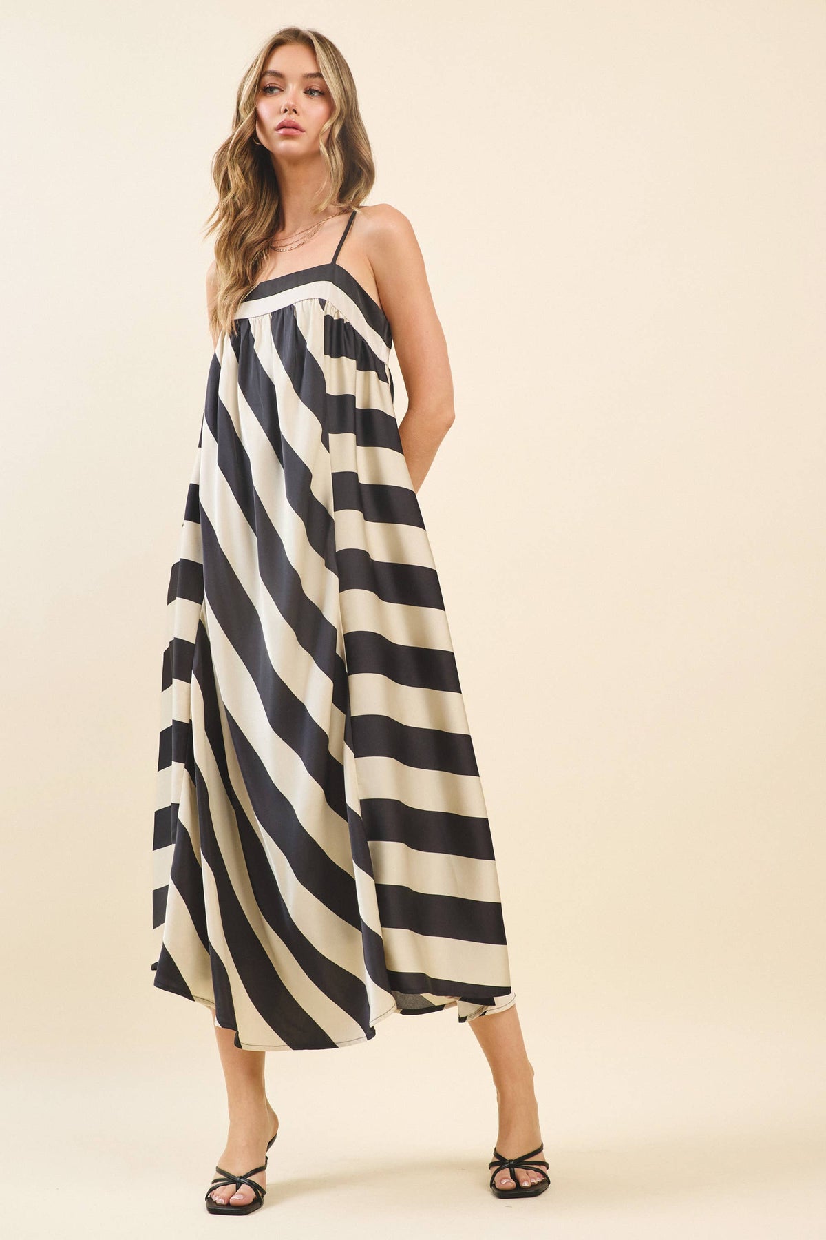 Bold Stripes Adjustable Straps Flowy Maxi Dress