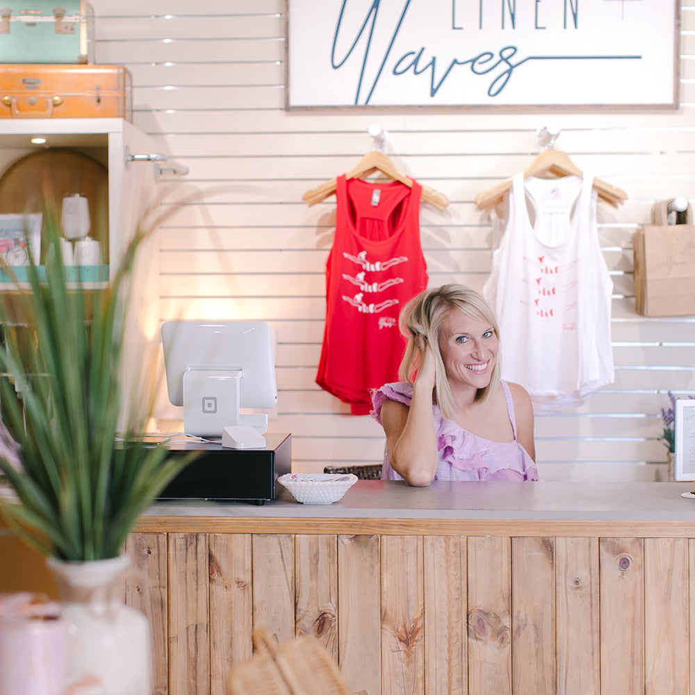 “Let the beauty of what you love, be what you do.” I love pretty things and I love living on the coast. Everything about coastal living attracts me. I’ve lived many places around the country, but the beach has always felt like home to me. I’m in love with everything from the pastel colored houses, the soft feel of the sand, and light and airy feel of being on the beach. Linen + Waves is my way of bringing that coastal feel into a store. My boutique is a coastal-chic collection of clothing, swimsuits, UPF-50 sun-protective apparel and coastal gifts. My shop is a space that evokes the feeling of coastal living and the warmth of southern hospitality.