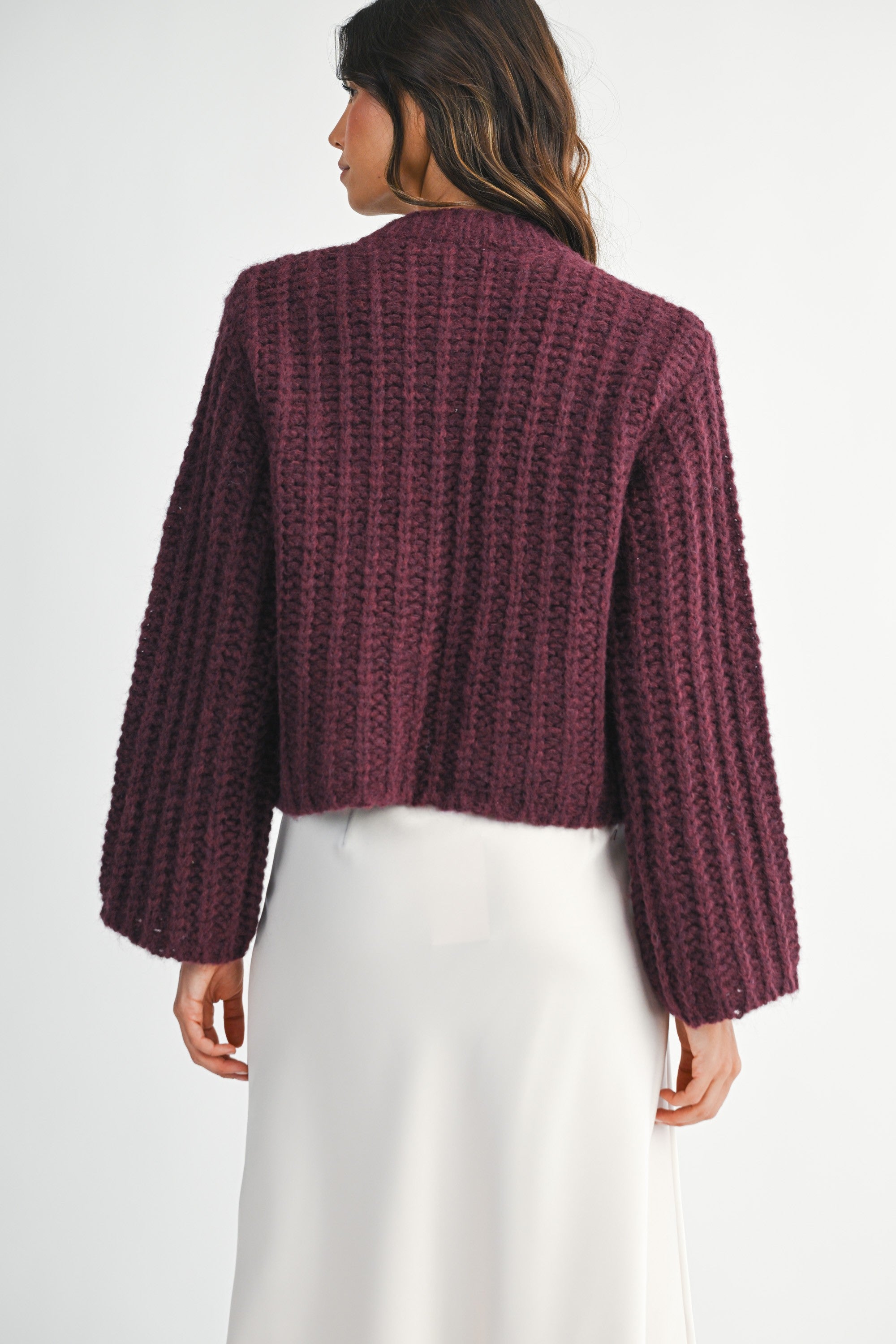 Chunky knit long sleeve large gold button down sweater cardigan. Front pocket detail.